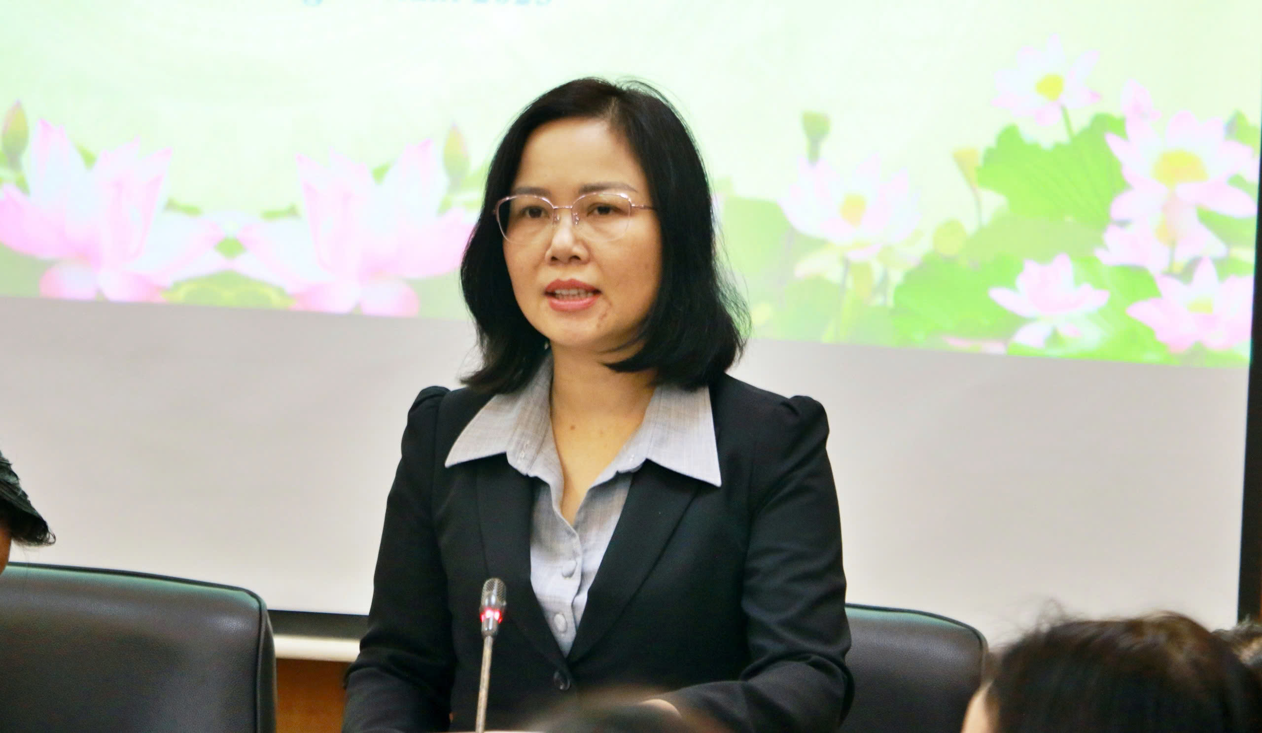 Phó cục trưởng Cục phổ biến, Giáo dục pháp luật và Trợ giúp pháp lý Vũ Thị Hường trình bày báo cáo