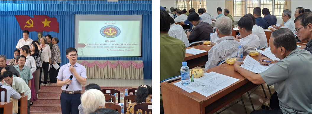 Thực hiện Kế hoạch công tác năm 2025 của Cục Phổ biến, giáo dục pháp luật và Trợ giúp pháp lý ban hành kèm theo Quyết định số 1133/QĐ-BTP ngày 02/4/2025 của Bộ trưởng Bộ Tư pháp, ngày 10/12/2025, Cục Phổ biến, giáo dục pháp luật và Trợ giúp pháp lý đã phối hợp với Sở Tư pháp tỉnh Tiền Giang tổ chức 03 Hội nghị tập huấn nâng cao năng lực, kiến thức về trợ giúp pháp lý tại phường Đạo Thạnh, Trung An và xã Long Hưng. Đây là các địa bàn có nhu cầu cao trong việc tiếp cận thông tin pháp luật đặc biệt là nhóm người dân yếu thế và các cộng đồng dân cư thường xuyên phát sinh tình huống pháp lý liên quan đến dân sự, đất đai và hành chính.