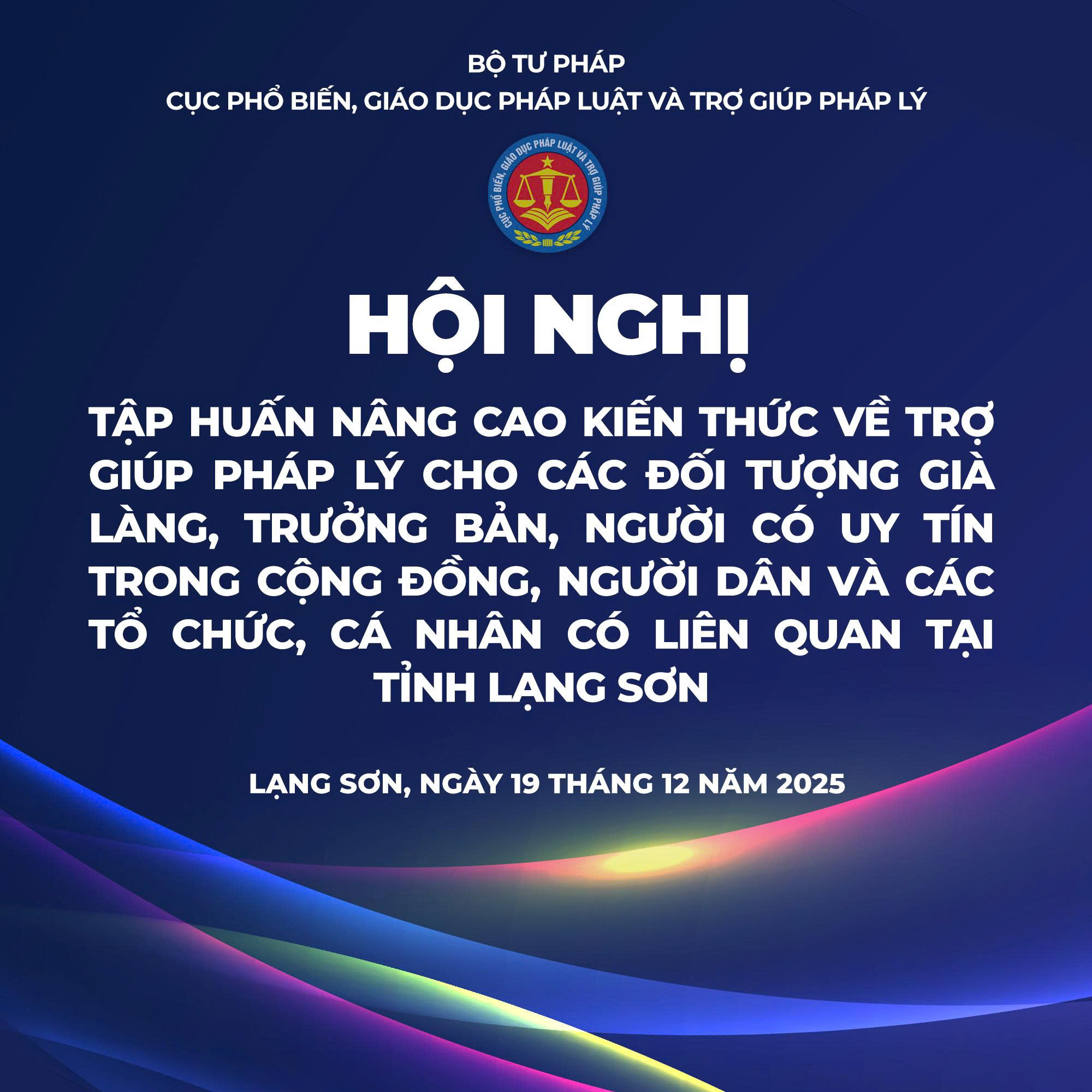 Ngày 19/12/2025, Cục Phổ biến, giáo dục pháp luật và Trợ giúp pháp lý sẽ tổ chức chuỗi Hội nghị tập huấn nâng cao kiến thức về trợ giúp pháp lý cho các đối tượng già làng, trưởng bản, người có uy tín trong cộng đồng, người dân và các tổ chức, cá nhân có liên quan tại tỉnh Lạng Sơn. Hoạt động hướng tới mục tiêu thu hẹp khoảng cách tiếp cận công lý và bảo vệ quyền lợi hợp pháp cho những đối tượng yếu thế.
