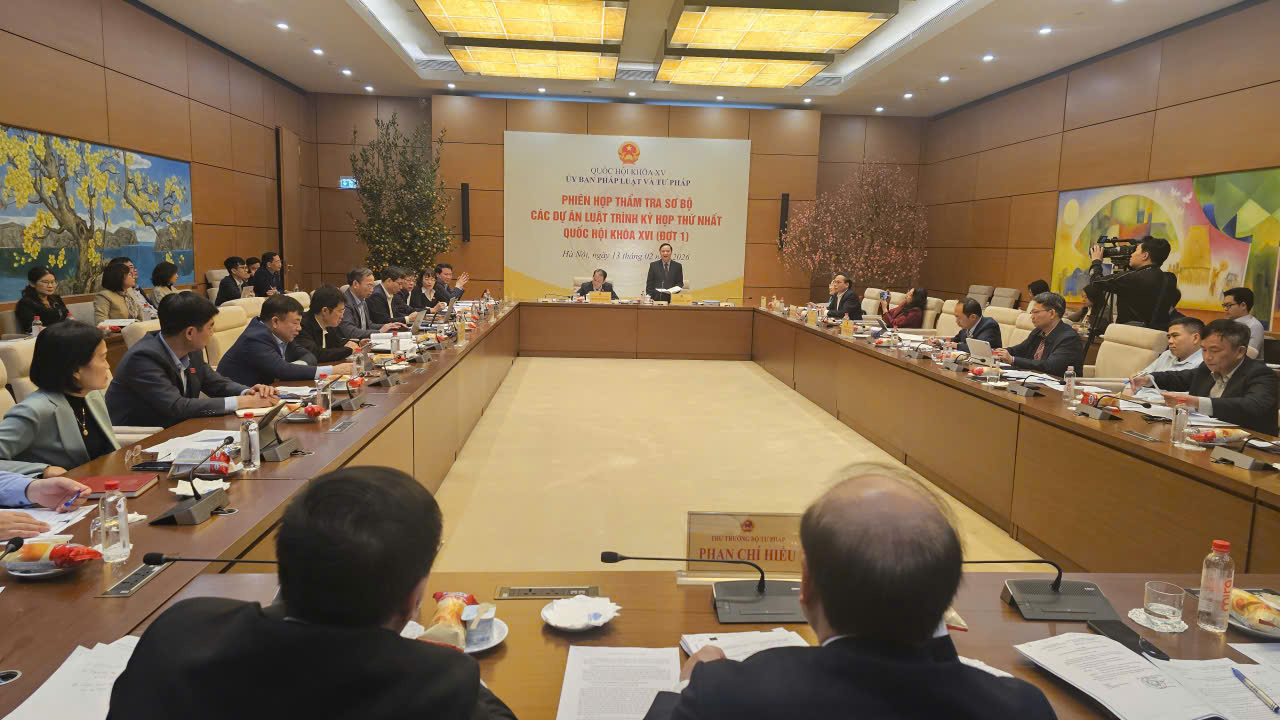 Phát biểu tại phiên họp, Phó Chủ tịch Quốc hội Nguyễn Khắc Định hoan nghênh tinh thần làm việc khẩn trương, trách nhiệm, phối hợp chặt chẽ của Thường trực Ủy ban Pháp luật và Tư pháp, Bộ Tư pháp và các cơ quan của Quốc hội cũng như đánh giá cao việc xây dựng kỹ lưỡng hồ sơ các dự án luật. Phó Chủ tịch Quốc hội nhấn mạnh, thời gian tới cần tiếp tục thể chế hóa tư tưởng về đổi mới tư duy xây dựng pháp luật để pháp luật thực sự là công cụ thúc đẩy kinh tế - xã hội, tháo gỡ các điểm nghẽn như Tổng Bí thư Tô Lâm yêu cầu, mỗi một văn bản được ban hành phải trả lời cho được câu hỏi: Người dân và doanh nghiệp được gì, giúp cho sự phát triển của đất nước như thế nào? Như vậy, cần thể hiện được các nội dung: tháo gỡ được gì, kiến tạo được gì, phân quyền phân cấp như thế nào, hiệu quả mang lại phải rõ.