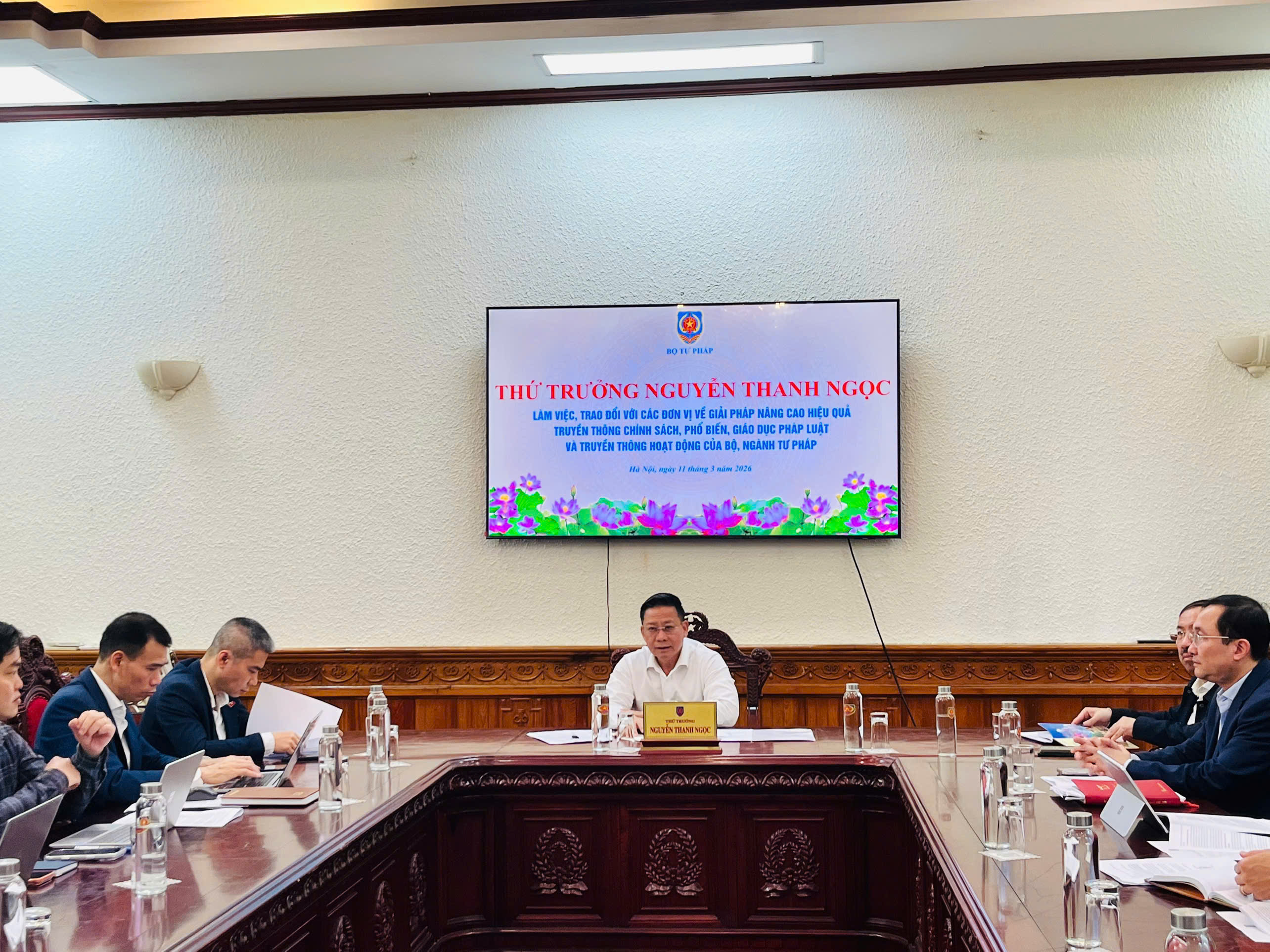 Chiều ngày 11/3/2026, Thứ trưởng Bộ Tư pháp Nguyễn Thanh Ngọc đã chủ trì buổi làm việc với các đơn vị thuộc Bộ về công tác truyền thông chính sách, truyền thông hoạt động của Bộ, ngành Tư pháp.