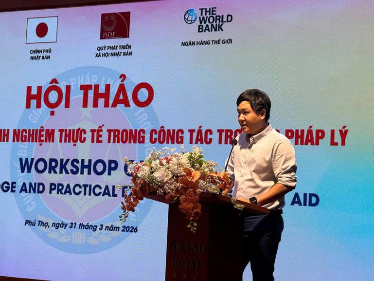 Ngày 31/3/2026 tại phường Hoà Bình, tỉnh Phú Thọ, Cục Phổ biến giáo dục pháp luật và Trợ giúp pháp lý tổ chức Hội thảo “Chia sẻ kinh nghiệm thực tiễn trong công tác trợ giúp pháp lý”. Đây là hoạt động trong khuôn khổ Dự án “Tăng cường trợ giúp pháp lý cho người nghèo và đối tượng yếu thế” do Ngân hàng Thế giới (WB) tài trợ từ Quỹ hỗ trợ Phát triển xã hội Nhật Bản (JSDF) giai đoạn 2022 - 2026. Hội thảo không chỉ là diễn đàn chuyên môn để chia sẻ kinh nghiệm mà còn mở ra không gian đối thoại thẳng thắn, đa chiều, qua đó phản ánh rõ nét thực tiễn công tác trợ giúp pháp lý tại các Trung tâm trợ giúp pháp lý nhà nước và các tổ chức tham gia thực hiện TGPL. Từ những trao đổi này, nhiều giải pháp thiết thực đã được gợi mở, hướng tới nâng cao chất lượng, hiệu quả của công tác trợ giúp pháp lý trong thời gian tới.