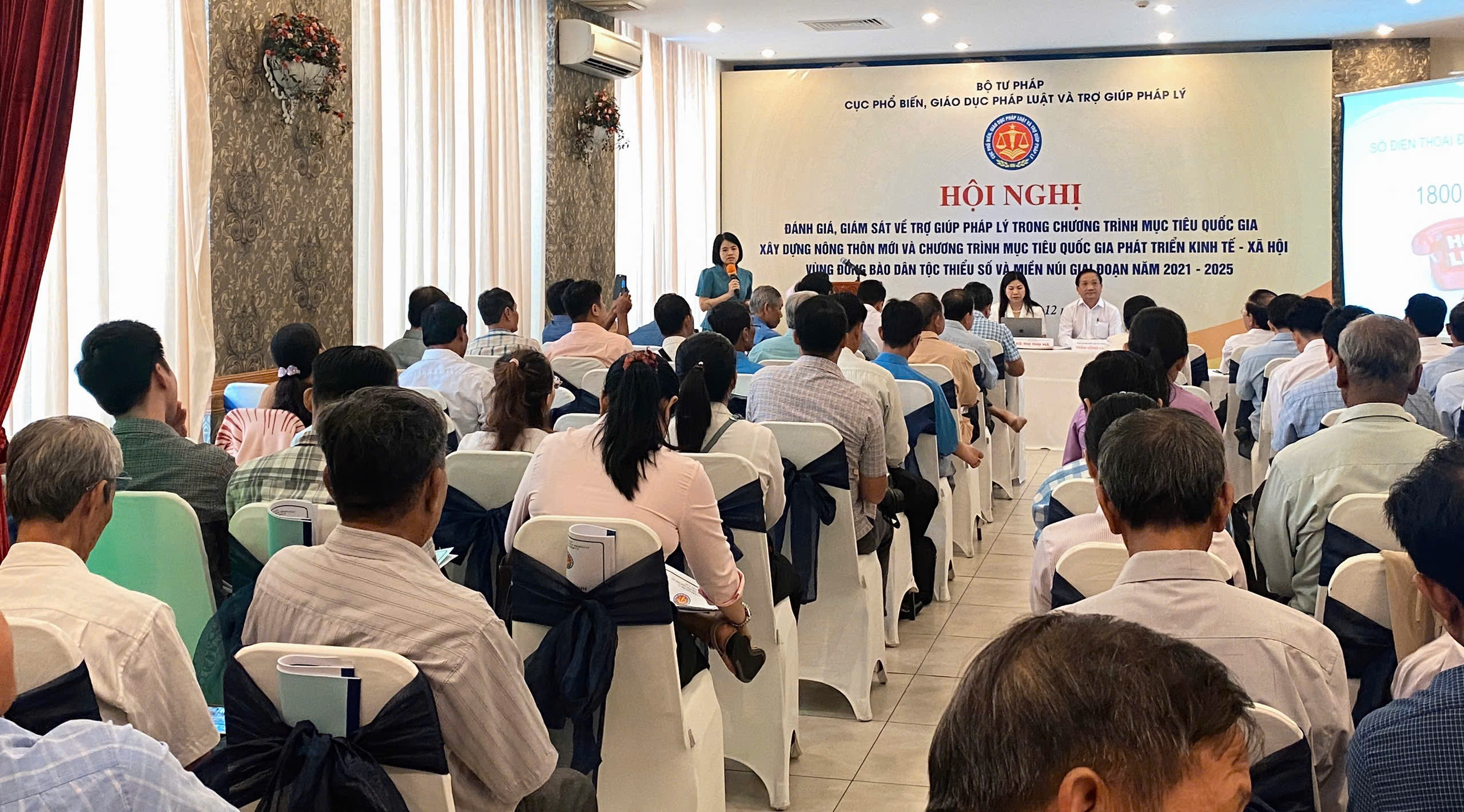 Phát biểu khai mạc Hội nghị, đồng chí Tô Thị Thu Hà nhấn mạnh rằng TGPL đã và đang khẳng định vai trò thiết yếu trong việc hỗ trợ người nghèo, đồng bào dân tộc thiểu số, người yếu thế, giúp họ tiếp cận kịp thời dịch vụ pháp lý miễn phí khi gặp khó khăn, tranh chấp hoặc vướng mắc về pháp luật. Trong giai đoạn 2021–2025, nội dung TGPL đã được đưa vào các Chương trình mục tiêu quốc gia và được triển khai đồng bộ cùng các chính sách về an sinh xã hội, cụ thể là Chương trình xây dựng nông thôn mới và Chương trình mục tiêu quốc gia phát triển kinh tế – xã hội vùng đồng bào dân tộc thiểu số và miền núi. Điều đó chứng tỏ vị trí, vai trò của công tác TGPL đã được Đảng, Nhà nước ghi nhận bởi những kết quả tích cực trong thời gian qua, thể hiện rõ quyết tâm của Chính phủ trong việc đưa pháp luật đến gần hơn với người dân, nhất là ở những vùng khó khăn, vùng sâu, vùng xa, biên giới – nơi người dân còn hạn chế về điều kiện tiếp cận thông tin pháp luật.