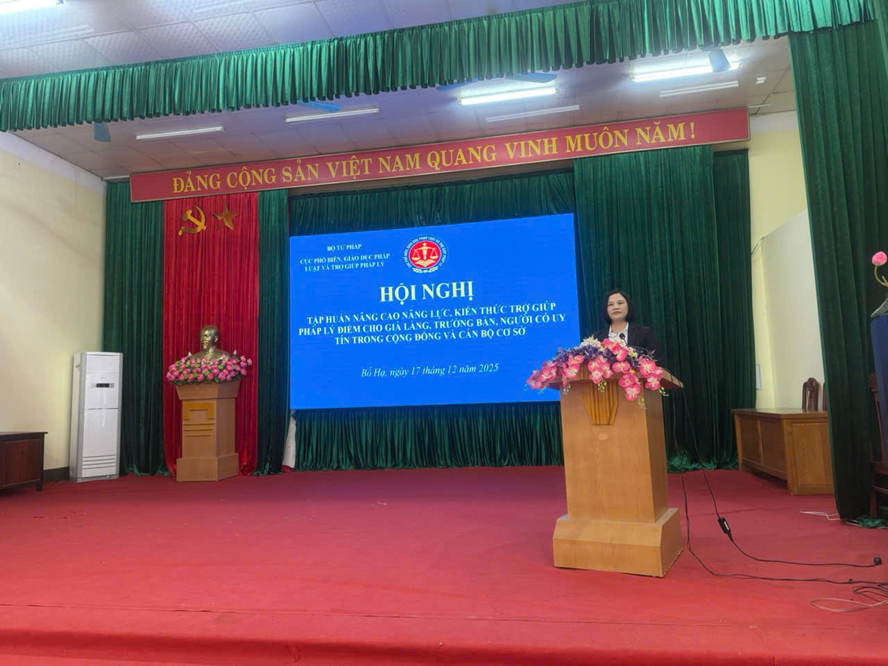 Tại điểm Hội nghị tập huấn xã Bố Hạ, bà Nguyễn Thị Hòa - Trưởng phòng Pháp luật dân sự đất đai, Trung tâm trợ giúp pháp lý nhà nước số 1 tỉnh Bắc Ninh - cho biết trong thực tiễn hoạt động, Trung tâm tiếp nhận không ít vụ việc dân sự, đất đai đáng lẽ có thể được giải quyết thuận lợi hơn nếu người dân được hướng dẫn sớm từ cơ sở. Theo bà Nguyễn Thị Hòa, nhiều người dân tìm đến Trung tâm khi tranh chấp đã kéo dài, hồ sơ thiếu hụt hoặc tâm lý đã căng thẳng.