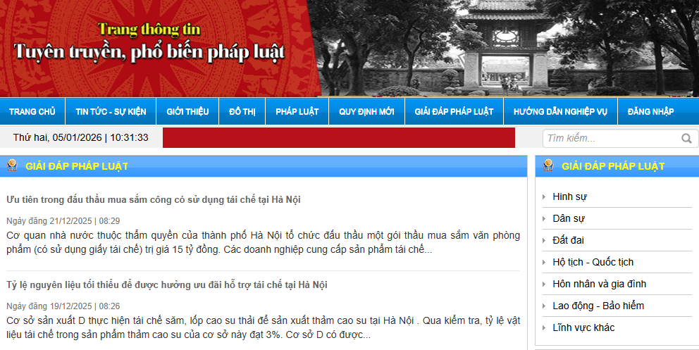(https://pbgdpl.hanoi.gov.vn) đã đi vào hoạt động. Từ đó đến nay, Trang đã duy trì và đăng tải nhiều tin, bài phản ảnh hoạt động phổ biến pháp luật trên địa bàn thành phố. Trong những năm gần đây, thành phố Hà Nội đã đẩy mạnh PBGDPL qua Trang Thông tin điện tử tuyên truyền, phổ biến pháp luật và thường xuyên cập nhật kịp thời, đăng tải tin, bài, video clip... với nội dung phong phú. Hiện Trang thông tin mỗi ngày có từ 13.000-15.000 người truy cập, với nhiều chuyên mục tuyên truyên vừa sâu, vừa rộng trong các lĩnh vực hình sự, dân sự, đất đai, hôn nhân và gia đình, hộ tịch, hỗ trợ pháp lý cho doanh nghiệp... Ngoài ra, thành phố Hà Nội cũng đẩy mạnh PBGDPL trên Trang/Cổng thông tin điện tử của cơ quan, đơn vị, doanh nghiệp.