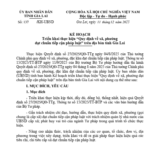 Triển khai Quyết định số 27/2025/QĐ-TTg ngày 04/8/2025 của Thủ tướng Chính phủ quy định về xã, phường, đặc khu đạt chuẩn tiếp cận pháp luật; Thông tư số 15/2025/TT-BTP ngày 11/9/2025 của Bộ trưởng Bộ Tư pháp hướng dẫn thi hành Quyết định số 27/2025/QĐ-TTg ngày 04 tháng 8 năm 2025 của Thủ tướng Chính phủ quy định về xã, phường, đặc khu đạt chuẩn tiếp cận pháp luật; các văn bản hướng dẫn của Bộ Tư p...