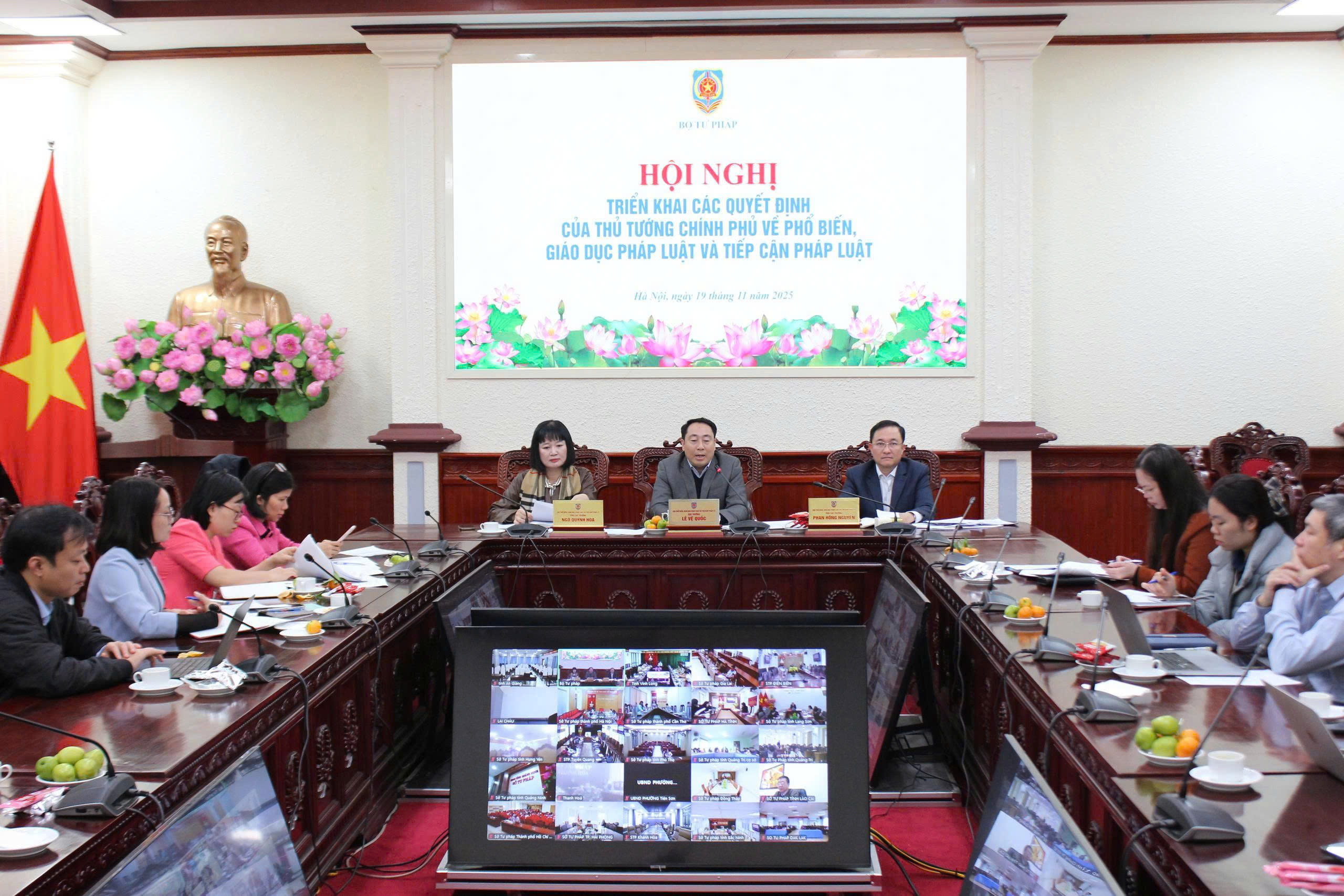 Sáng 19/11/2025, Cục Phổ biến, giáo dục pháp luật và Trợ giúp pháp lý tổ chức Hội nghị triển khai các Quyết định của Thủ tướng Chính phủ về phổ biến, giáo dục pháp luật và tiếp cận pháp luật. Hội nghị tập trung phổ biến các quy định, hướng dẫn thực hiện và thảo luận các giải pháp nâng cao hiệu quả công tác phổ biến, giáo dục pháp luật tại cơ sở, với sự tham gia trực tuyến của 34 địa phương cùng đạ...