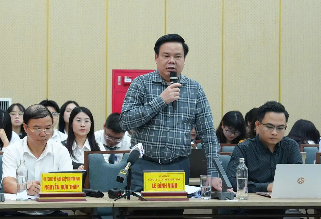Hội thảo cũng lắng nghe nhiều tham luận thiết thực như ý kiến của bà Phạm Thúy Hạnh - Phó Vụ trưởng Vụ Pháp luật, Văn phòng Chính phủ, hay những đề xuất cụ thể về quy hoạch, thu hồi, tái định cư, định giá đất từ ông Lê Đình Vinh - Giám đốc Công ty Luật Vietthink - đơn vị tài trợ cho Hội thảo. Những chia sẻ tâm huyết từ ông Nguyễn Hữu Thập - Chủ tịch Hiệp hội Doanh nghiệp tỉnh Tuyên Quang càng làm rõ thêm những khó khăn thực tiễn mà doanh nghiệp đang gặp phải.