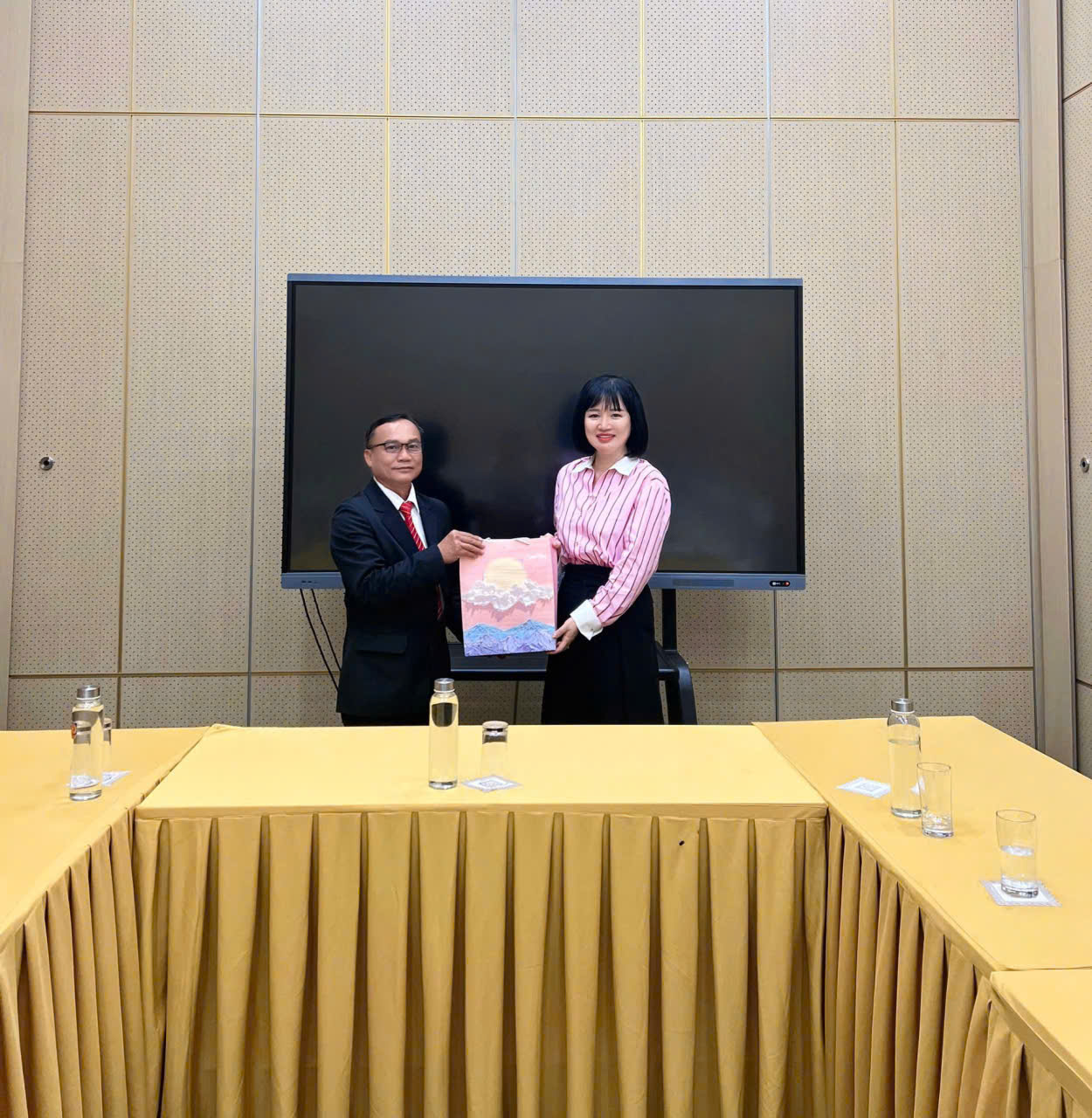 Đoàn công tác của Bộ Tư pháp Lào trao quà lưu niệm.